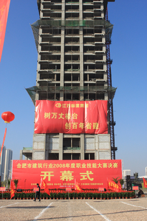 12月1日上午,江苏省建集团人行合肥支行项目现场艳阳高照,彩旗飘扬,由安徽省合肥市建委主办、江苏省建集团承办的合肥市建筑行业2008年度职业技能大赛决赛在合肥市滨湖新区江苏省建集团人行合肥支行项目工地拉开帷幕。来自合肥市肥东、肥西、长风、市属、安徽省属及进肥企业6支代表队共百余名选手参加了决赛。江苏省建集团共有12名技术能手进入决赛。